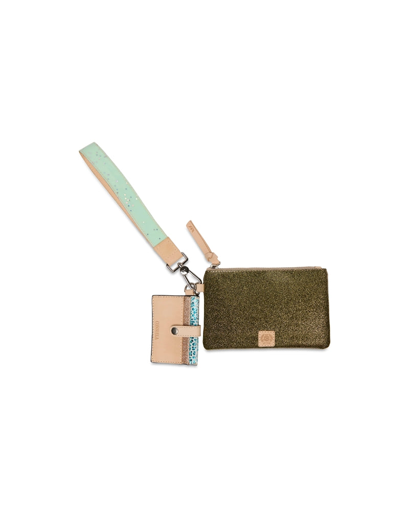 The Combi, a combination of on-the-go accessories, is a new way to carry your keys, cards, and the small stuff together or separately. This embroidered wristlet wallet includes a pocket pouch, secure card slot wallet and fits comfortably around your wrist.