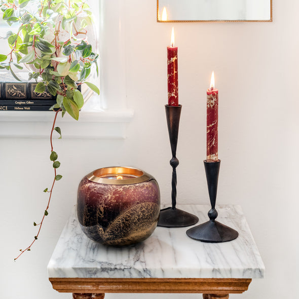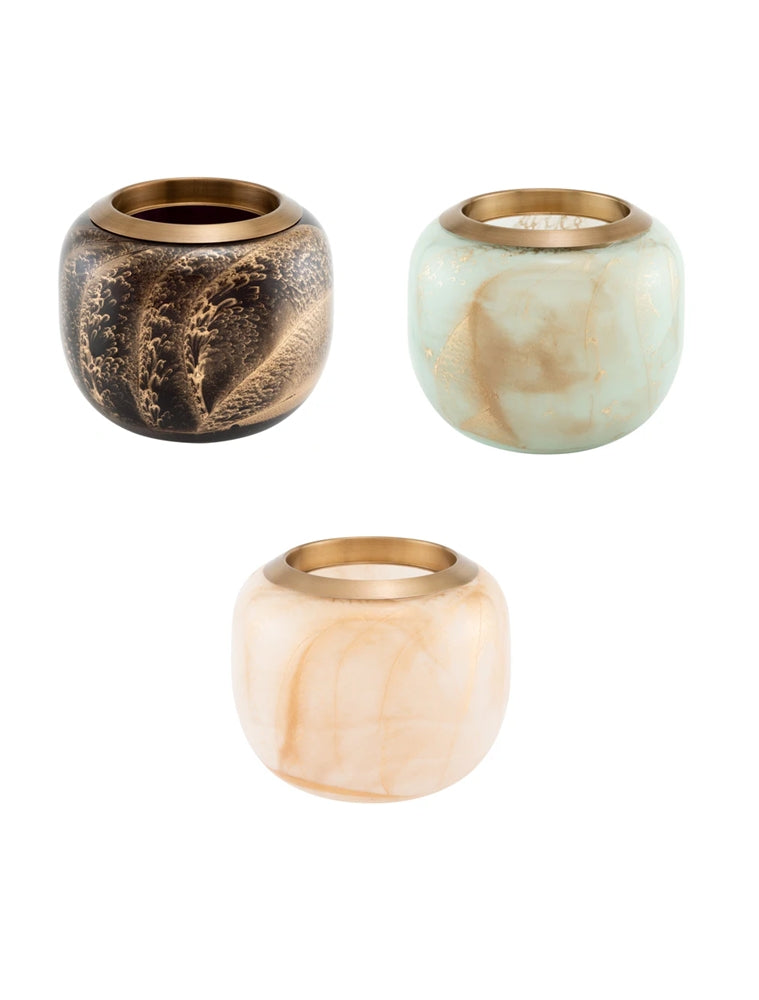 Esque® is Northern Lights' longest-selling product line and features an exclusive, handmade technique called wax painting. Layers of wax and metallic swirls encircle the inside of clear glass causing a striking glow to emanate with varying intensity and detail when lit.