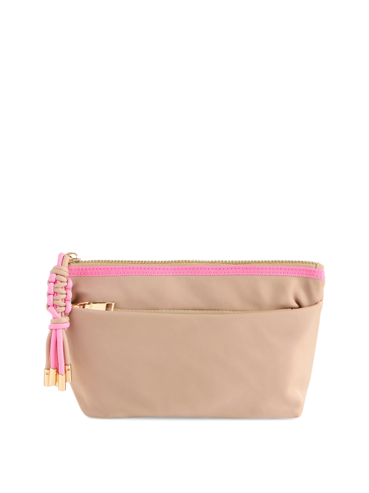 Take your on-the-go organization to new heights with the Jet Zip Pouch. This sleek and sporty design features a top zip closure, one inner zip pocket, two inner slip pockets, and a convenient outer zip pocket for easy access. Available in a range of bold color combos, it’s crafted from durable nylon and accented with eye-catching paracord zipper pulls and gold hardware. Whether stashing travel essentials, tech accessories, or everyday must-haves, the Jet Zip Pouch keeps it all zipped up in style.