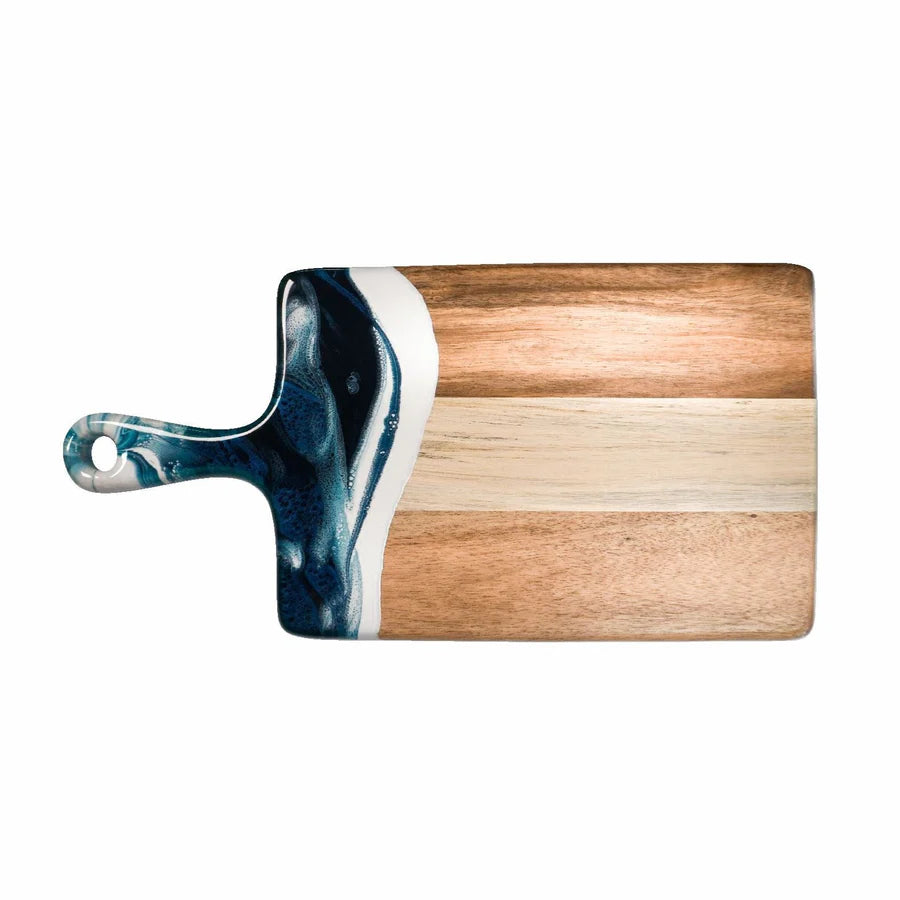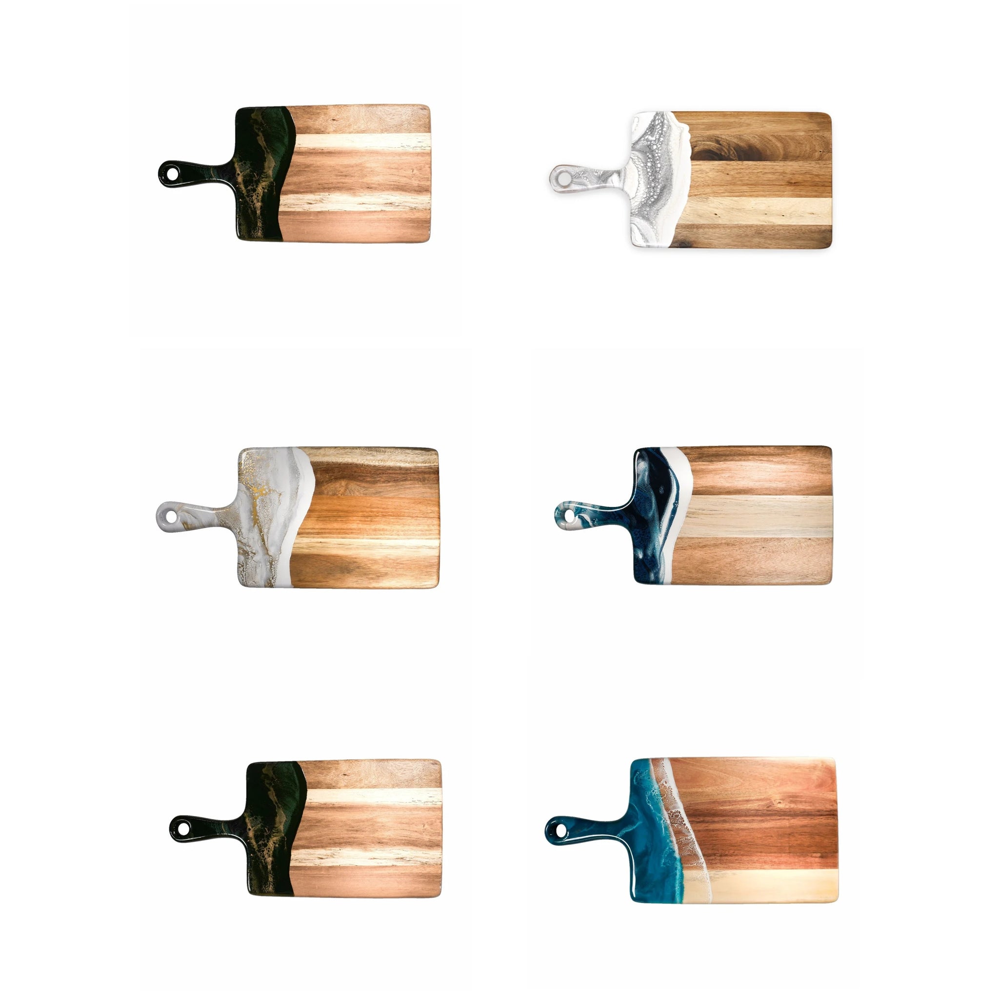 These pieces blend gorgeous Acacia hardwood and an eco-friendly resin to create a one-of-a-kind piece of serve ware for your home. These cheese boards are perfect for serving a group of 2-4 people.