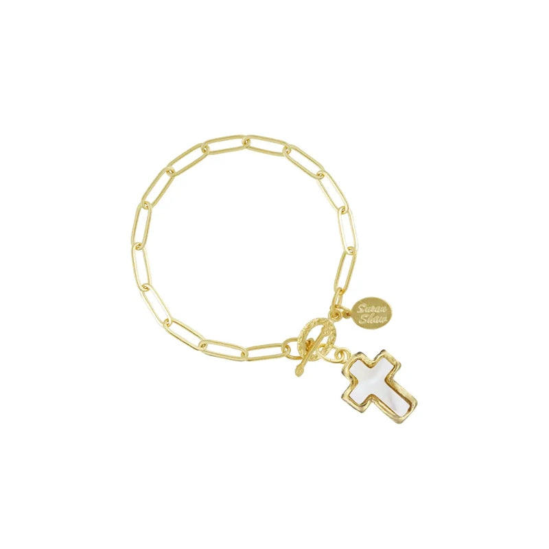 Mother of Pearl Cross Bracelet, gold