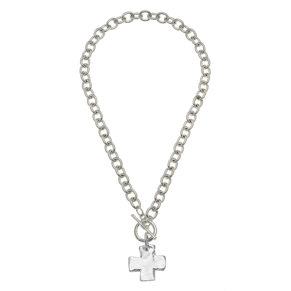 Susan's hand cast square cross pendant is an all-time favorite. Paired with our best-selling necklace style with toggle detail, this design is classic.