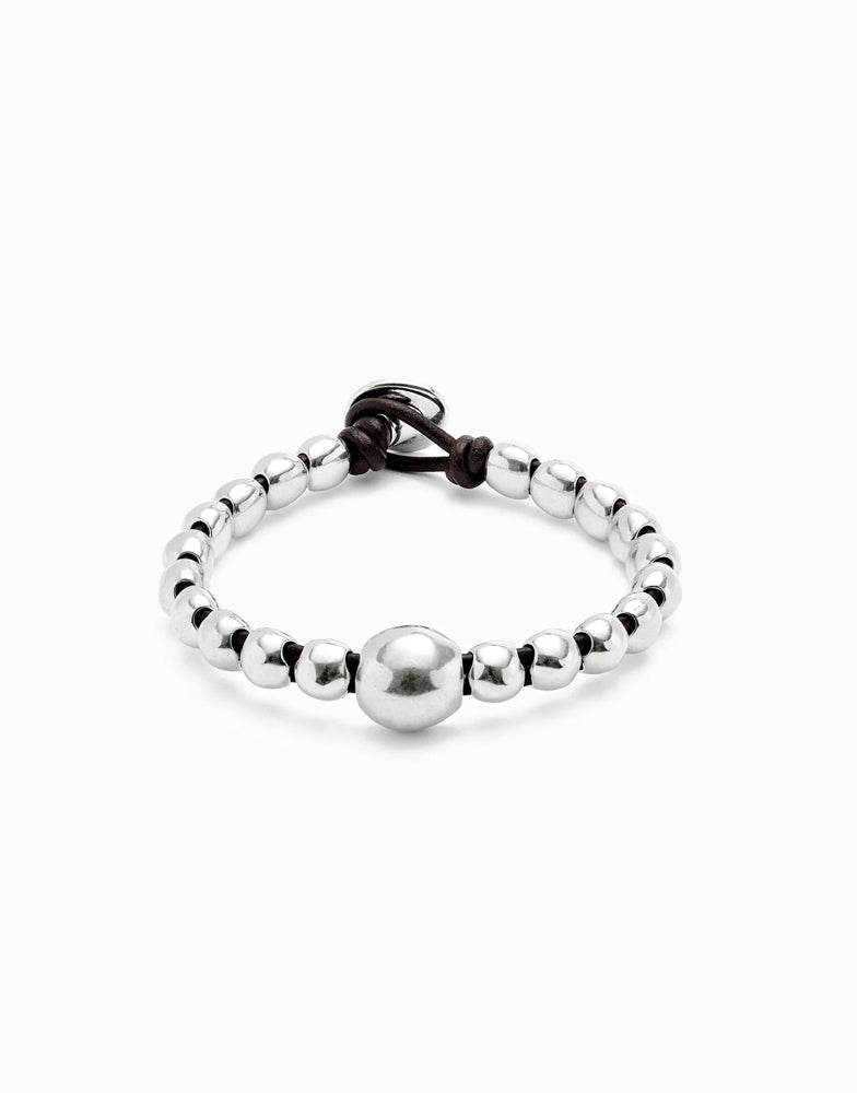 Bracelet with sterling silver-plated beads and central larger silver bead.