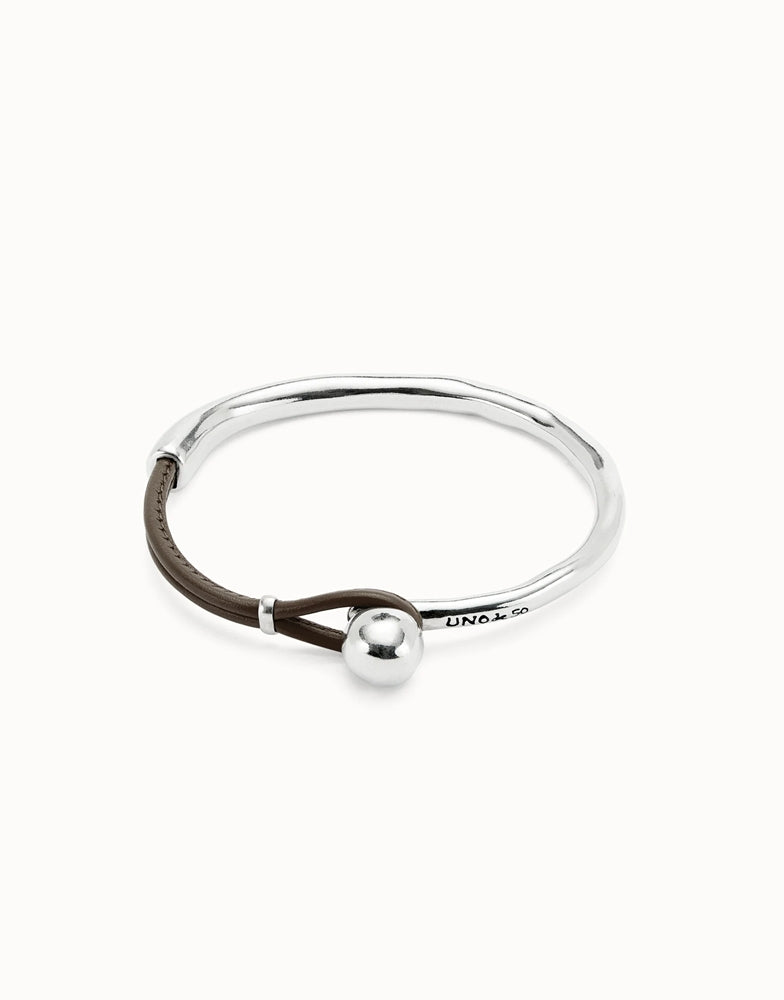 Semi-rigid sterling silver-plated bracelet with brown leather. Ser intrépida is to live with courage and determination.